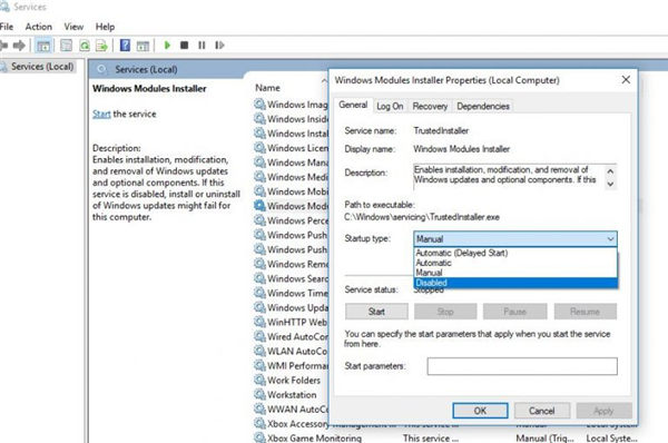 ⇔ 禁用模块安装服务