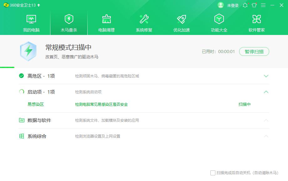 2、360安全卫士正在自动检测电脑中的病毒,稍等片刻即可完成检测,如下图。