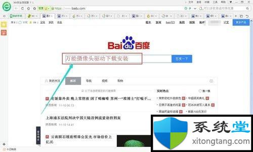 1、打开百度搜索栏,在里面输入万能摄像头驱动下载安装,会自动跳转到下一个链接网站。