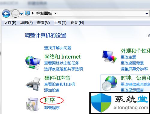 2. 在打开的“控制面板”窗口中,单击“程序”链接: