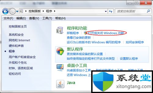 3. 在打开的窗口中,单击“程序和功能”下的“打开和关闭 Windows 功能”链接: