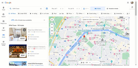 此外,新版本的旅游发现工具还可以帮助用户更轻松地查找旅游目的地信息,或者使用地图指南来说明目的地附近的旅游景点。同时,它还会标明乘坐交通工具到达那里所需的时间,以及乘坐飞机最低票价的信息。